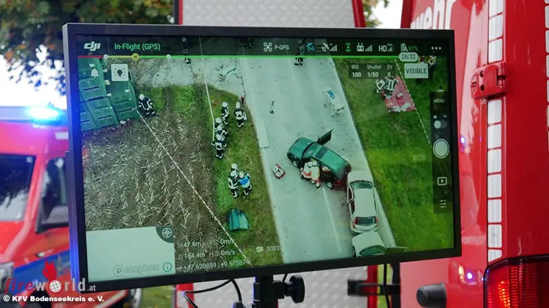Die neu gegründete Drohnengruppe der Feuerwehren im Landkreis dokumentierte die Übung von oben und lieferte wichtige Übersichtsbilder für die Einsatzleitung.