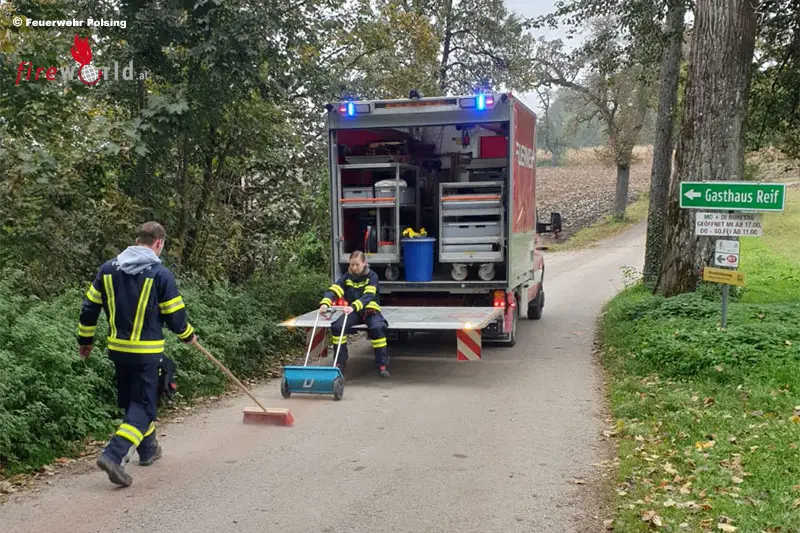 Die Spur erstreckte sich von Forst bis zu einem Supermarkt Platzplatz in Buchkirchen. Den Bereich der Gemeinde Alkoven übernahmen die Kräfte der FF Polsing. Die ausgelaufene Flüssigkeit wurde gebunden und die Strecke mit Warntafeln abgesichert. Nach rund einer Stunde war der Einsatz für die Feuerwehr Polsing abgearbeitet.