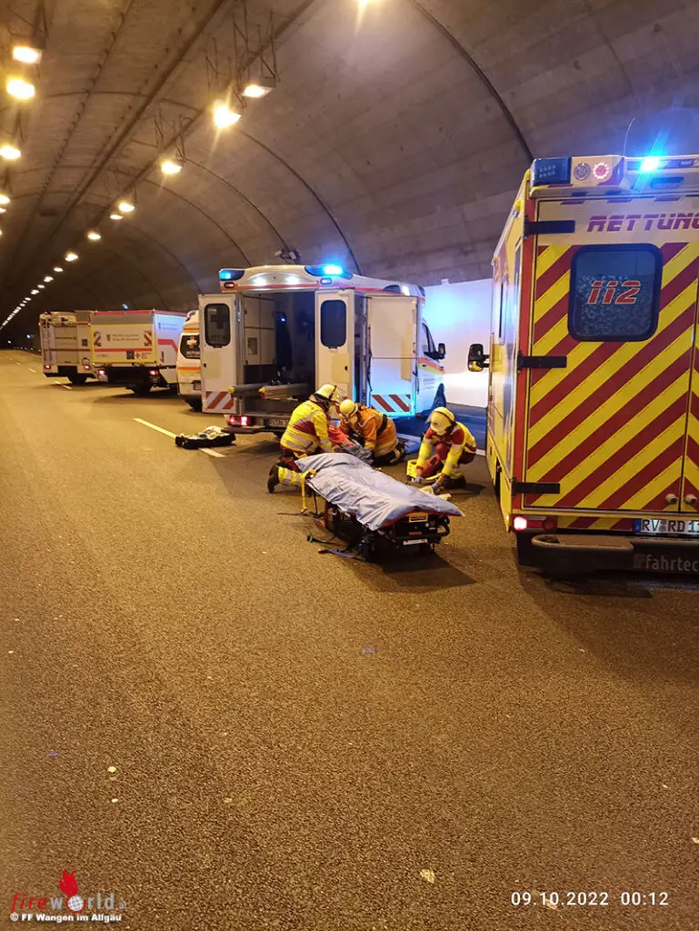 WANGEN IM ALLÄU (DEUTSCHLAND): In der Nacht zum Sonntag, 9. Oktober 2022, war der Autobahntunnel Herfatz und somit die A96 bei Wangen mehrere Stunden voll für den Verkehr gesperrt. Grund dafür war eine turnusgemäß vorgeschriebene Übung der Rettungskräfte sowie ein allgemeiner Sicherheitscheck durch die Autobahn GmbH.
