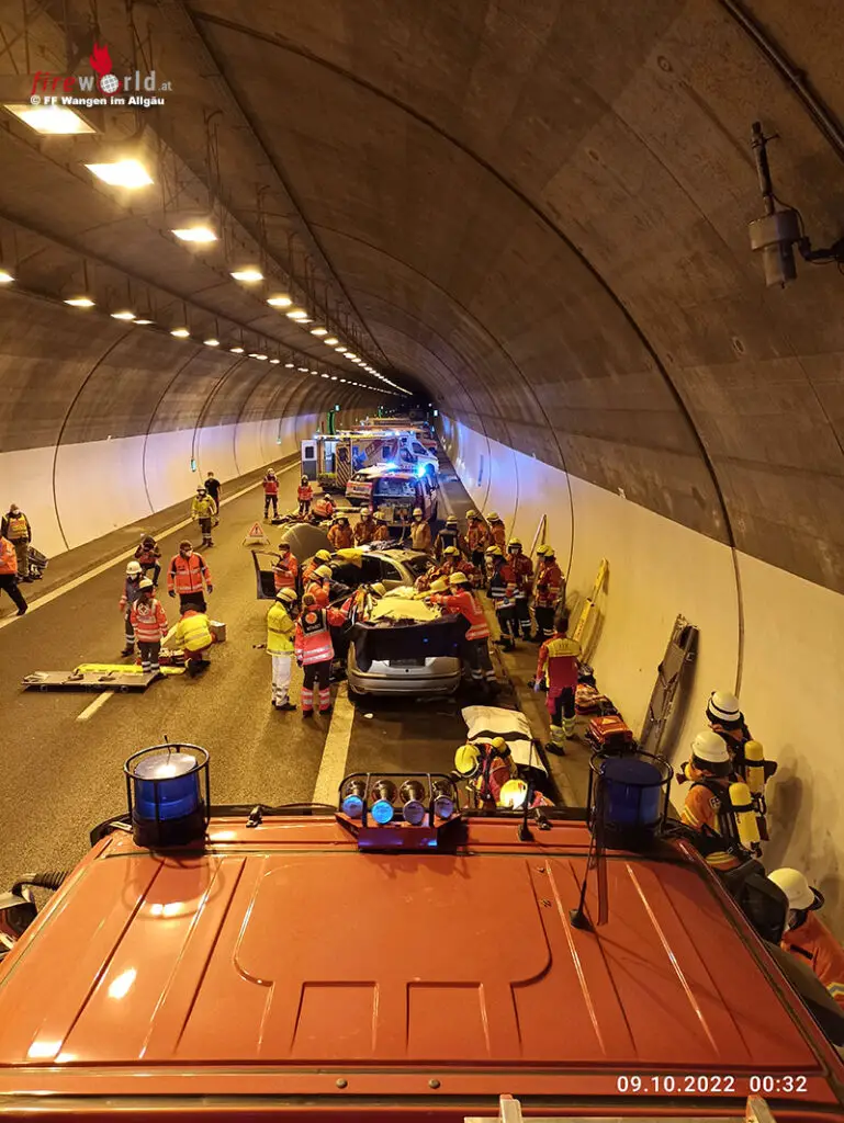 Diese waren im Wesentlichen ein Fahrzeugbrand in der Tunnelröhre Fahrtrichtung Lindau und einem schweren Verkehrsunfall in der Röhre in Richtung München. Beide verunfallen Pkw waren voll besetzt und so waren hier zahlreiche schwer verletzte Personen in ihren Fahrzeugen eingeschlossen.
