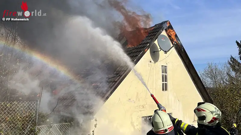 HOHENEICH (NÖ): Noch im Juni 2022 beübte die Feuerwehr Hoheneich gemeinsam mit mehreren anderen Feuerwehren in einer Unterabschnittsübung einen Dachstuhlbrand am Hausberg. Ein Gebiet von Hoheneich, das aufgrund seiner geografischen Höhe schlecht mit Löschwasser versorgt ist. Am 20. Oktober 2022 wurde dieses Übungsszenario zur Realität.