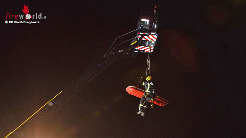Dabei übernahm die FF Groß Siegharts einerseits die Brandbekämpfung mittles Strahlrohr und eine Zubringerleitung von einem nahegelegenem Hydranten. Weiters wurden zwei Atemschutztrupps zur Brandbekämpfung bzw. Personensuche auf dem Dach eingesetzt.
