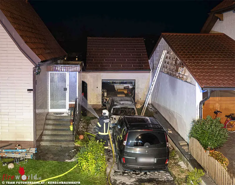 Oö: Pkw brennt in Hauszufahrt in Linz → auch zweites Auto und Fassade erfasst