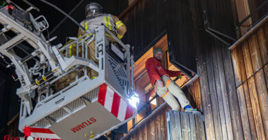 Bei der Übung eingesetzt waren das Hilfeleistungslöschfahrzeug, der Gerätewagen-Logistik, die Drehleiter und das First-Responder-Fahrzeug. Eingesetzt waren 16 Einsatzkräfte mit denen diese Aufgabe durchaus zu lösen war.