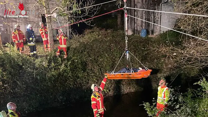 Bayern: Personenrettung aus Bach mit Seilbahn → Einsatzübung in Waging am See
