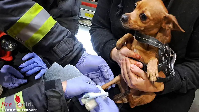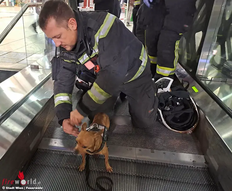 WIEN, 10. BEZIRK: Ein Chihuahua klemmte sich am späteren Nachmittag am Hauptbahnhof beim Verlassen einer Rolltreppe eine Pfote ein. Feuerwehrleute befreiten den Hund und übergaben ihn an alarmierte Tierärzte.