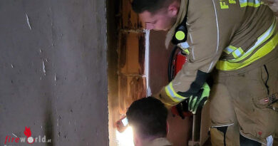 D: Feuerwehr Düsseldorf kämpft sich in leerstehende Halle zu brennenden Kartonagen vor