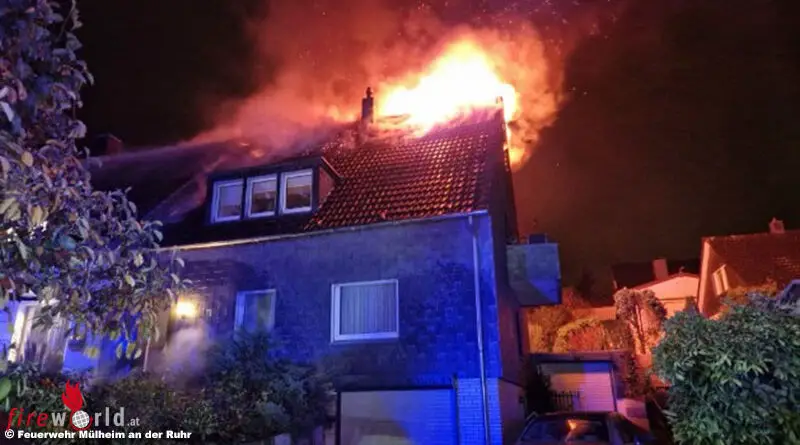 D: Ausgedehnter Dachstuhlbrand einer Doppelhaushälfte in Mülheim an der Ruhr
