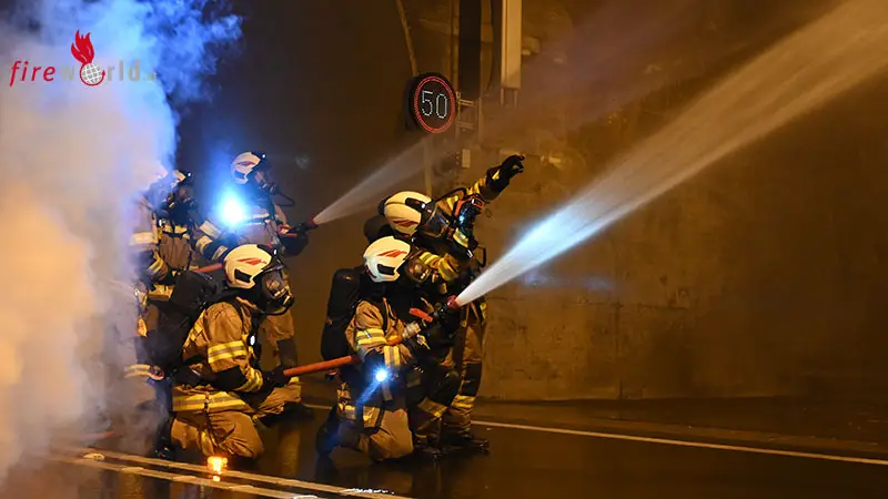 Für die Trupps der Brandbekämpfung ist dabei die korrekte Löschtechnik von hoher Bedeutung, denn bei einem Fahrzeugvollbrand im Tunnel spielt die Kühlung des Tunnels selbst eine entscheidende Rolle.