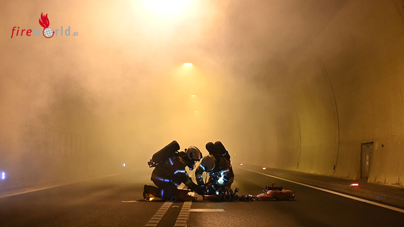 Besonderes Augenmerk wurde bei der Übung auf das richtige Vorgehen der Atemschutztrupps gelegt. Diesen werden beim Tunneleinsatz spezialisierte Aufgaben zugeteilt.