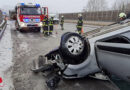 Als die ersten Kräfte an der Einsatzstelle eintrafen, stellte sich die Lage so dar, dass sich ein Pkw mehrfach überschlagen hatte und auf dem Dach liegen geblieben war. Durch Ersthelfer waren die Verletzten noch vor Eintreffen der Rettungskräfte aus ihren Fahrzeugen befreit worden. Die schwerverletzten Insassen eines der Unfallfahrzeuge wurden durch den Rettungsdienst und die Kräfte der Feuerwehr versorgt.
