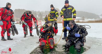 Die Einsatzmeldung, für die teilnehmenden Wehren lautete „Brand einer Werkstätte mit mehreren vermissten Personen“. Mehrere Atemschutztrupps durchsuchten die stark verrauchten Räumlichkeiten nach den Vermissten und brachten sie aus dem Gebäude.