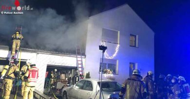 Eine Frau sitzt am Fensterbrett ihrer verrauchten Wohnung im dritten Stock und droht zu springen. Sie kann aber bis zum Vordringen eines Feuerwehr-Trupps beruhigt und daran gehindert werden.