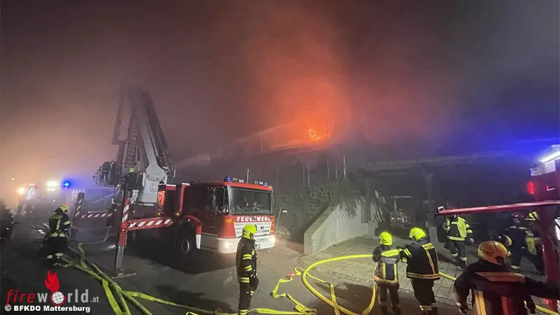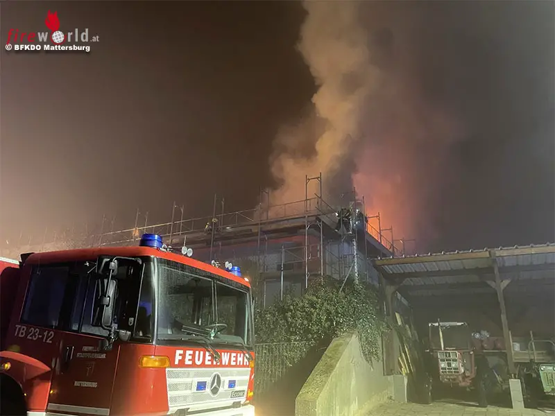 Um 21:17 heulten die Sirenen. Aus noch ungeklärter Ursache kam es beim Zubau des Pflegezentrums Draßburg zu einem Dachbrand.