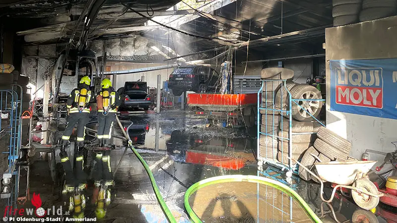 D: Trennschleifer-Arbeiten führen zu Feuer in Autowerkstatt in Edewecht