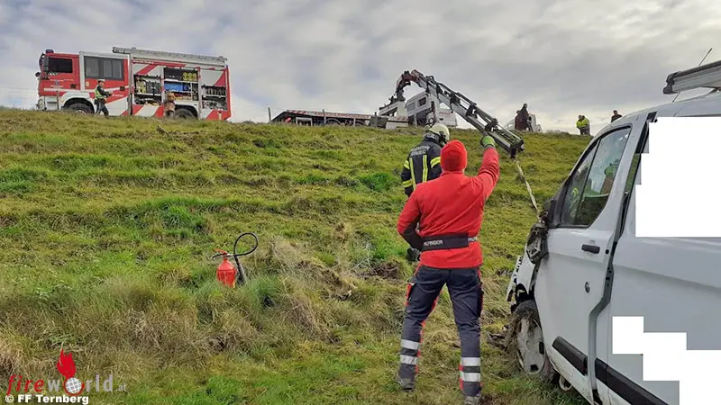 TERNBERG (OÖ): Nach einem missglücktem Überholvorgang kam am Freitag, 25. November 2022, ein Kleintransporter auf der B115 Eisenbundesstraße in Ternberg von der Fahrbahn ab, überschlug sich und kam auf einer Böschung zum Stillstand.