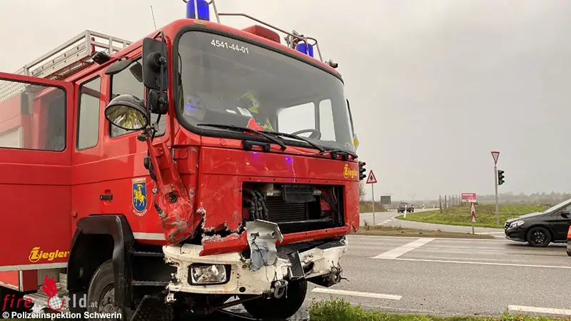 SCHWERIN (DEUTSCHLAND): In Schwerin wurden am 2. Dezember 2022 drei Personen bei einem Verkehrsunfall mit Beteiligung eines Feuerwehr-Lkw verletzt.