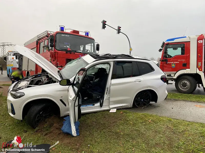 D: Drei Verletzte bei Einsatzfahrt-Unfall mit Lkw und Pkw auf Kreuzung in Schwerin