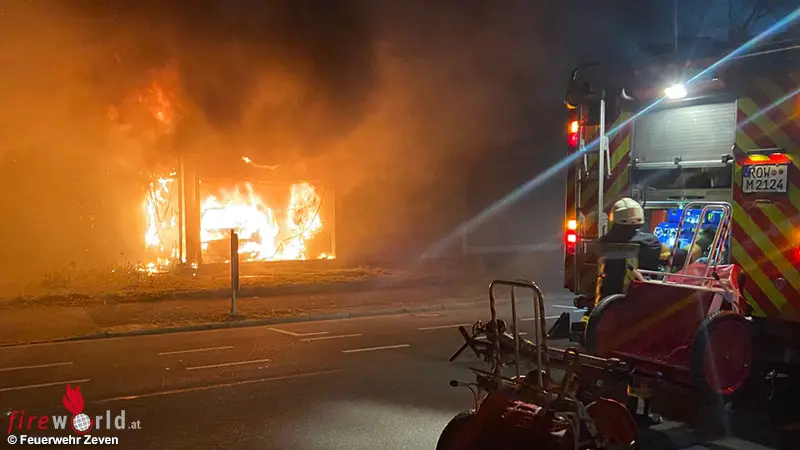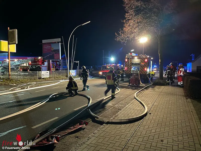ZEVEN (DEUTSCHLAND): In der Nacht zum Samstag, 3. Dezember 2022, wurde der Feuerwehr Zeven um 00:47 Uhr ein Feuer in einer Werkstatt in der Bremer Straße gemeldet. Die anrückende Feuerwehr bekämpfte das Feuer, das sich in einem Pkw an der Gebäudevorderseite hinter Glasscheiben befand, unter schwerem Atemschutz.
