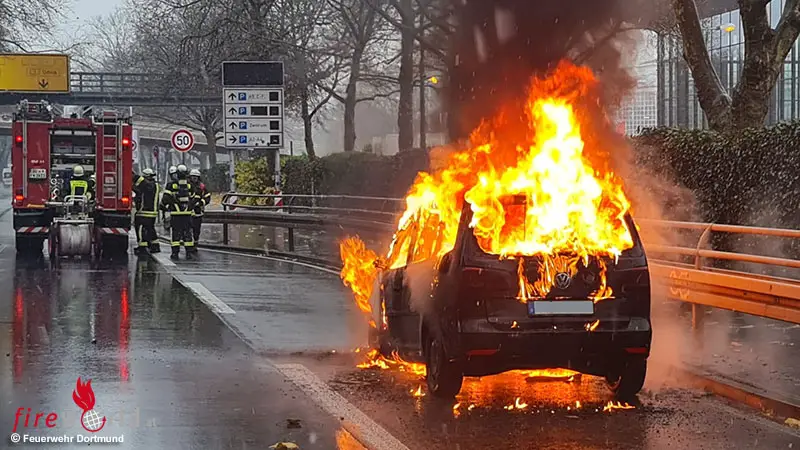 DORTMUND (DEUTSCHLAND): Gegen 09:30 Uhr des 5. Dezember 2022 ist es in Dortmund zu einem Pkw-Brand auf der B1 in Fahrtrichtung Unna in Höhe der Westfalenhalle gekommen.