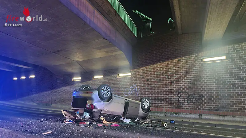 LEHRTE (DEUTSCHLAND): Die Einsatzkräfte der Ortsfeuerwehr Hämelerwald wurden am Dienstagabend, dem 13. Dezember 2022, um 23:18 Uhr nach Hämelerwald in den Bereich der Bahnbrücke (Niedersachsenstraße) alarmiert. Grund der Alarmierung war ein Verkehrsunfall mit einem beteiligten Pkw nach Sturz von der Brücke mit unklarer Lage inwieweit die Fahrzeugführerin eingeklemmt war.