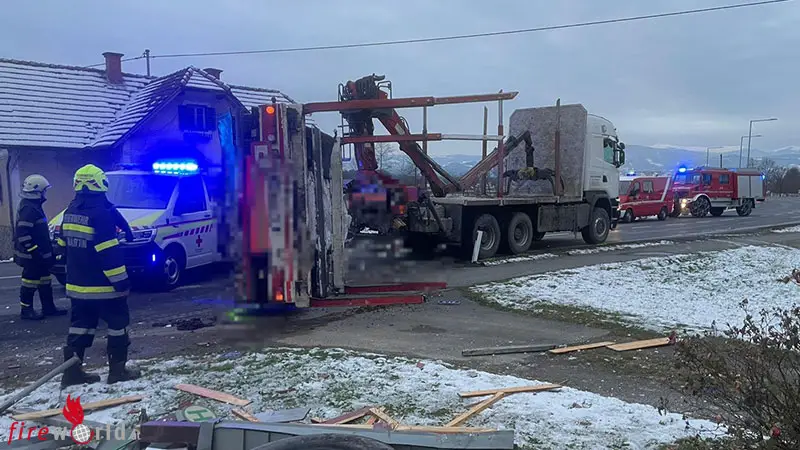 Stmk: Pkw kollidiert mit Lkw-Holzanhänger → Mann in St. Martin /S. aus Auto befreit