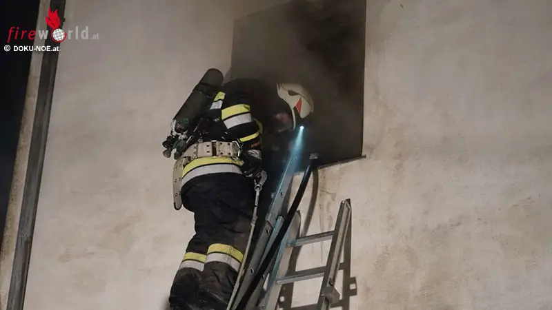 In einem Gebäude brach aus noch unklarer Ursache Feuer aus. Am Einsatzort angekommen, begann die Feuerwehr sofort mit der Brandbekämpfung und der Suche mittels Atemschutzgeräteträger nach der vermissten Person.
