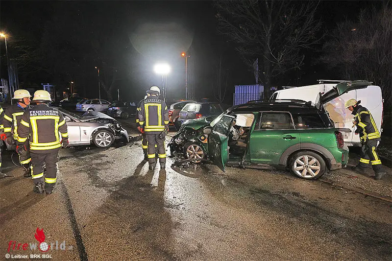 Als das automatische Notruf-System eines der beteiligten Fahrzeuge auslöste, schickte die Leitstelle Traunstein die Freiwillige Feuerwehr Bad Reichenhall samt Löschzug Karlstein und das Rote Kreuz mit der Reichenhaller Notärztin und zwei Rettungswagen aus Freilassing und Teisendorf zum Unfallort. Die Einsatzkräfte versorgten und untersuchten die beiden Verletzten und lieferten die 77-Jährige dann per Rettungswagen in die Kreisklinik Bad Reichenhall ein. Die Feuerwehr stellte den Brandschutz sicher, reinigte die Fahrbahn, leuchtete die Einsatzstelle aus und konnte den restlichen Autoverkehr lokal über den Florianiplatz umleiten, so dass es zu keinen größeren Staus kam.
