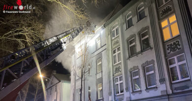 Kurze Zeit später konnte das HLFA 3 und LFA vollbesetzt zum Einsatzort ausrücken. Dort angekommen, konnte eine starke Verrauchung im Gebäude festgestellt werden. Zwischen Wandverkleidung und Kamin entstand ein Kleinbrand.