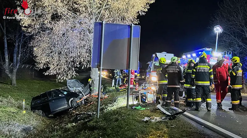 Stmk: Pkw aufgrund medizinischen Notfalls auf B 76 in Lannach gegen Baum gekracht