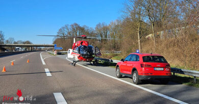 Während der Rettungsmaßnahmen stellten weitere Einsatzkräfte den Brandschutz sicher, sicherten den Landeplatz für den Rettungshubschrauber und streuten die ausgelaufenen Betriebsmittel ab.