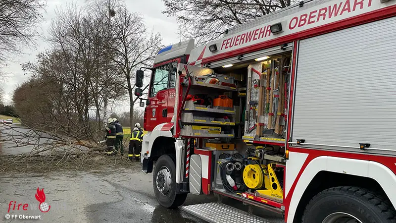 Bgld: Feuerwehr Oberwart entfernt über Fahrbahn gestürzten Baum