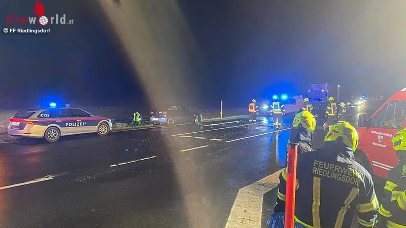 RIEDLINGSDORF (BGLD): Am Freitag, dem 13. Jänner 2023, wurde die Freiwillige Feuerwehr Riedlingsdorf zu einem Verkehrsunfall auf die Kreuzung B63 / Untere Hauptstraße (südliche Ortseinfahrt) alarmiert. Unverzüglich rückten 20 Mitglieder mit dem Kleinrüstfahrzeug (KRFA-S), dem Tanklöschfahrzeug (TLFA 3000) und dem Löschfahrzeug (LF) samt Abschleppanhänger zur Unfallstelle aus.