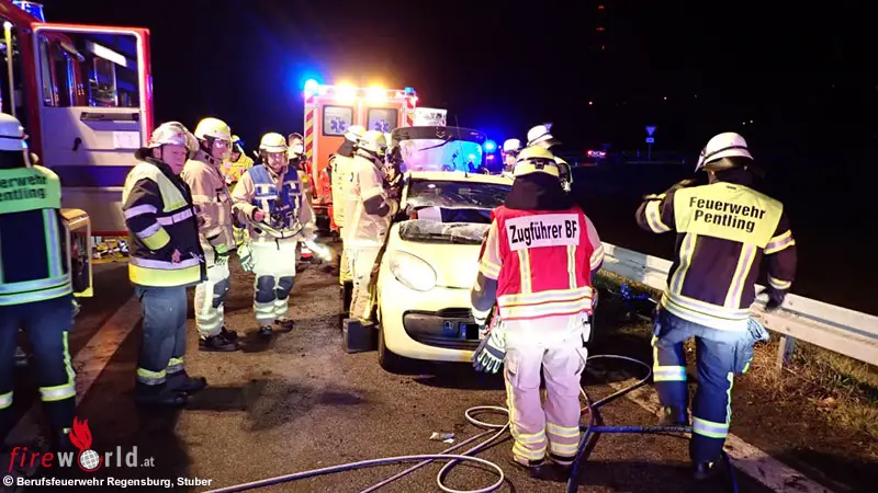 Auf Grund der unübersichtlichen Lage wurden von der Integrierten Leitstelle Feuerwehrkräfte aus Stadt-/ und Landkreis alarmiert. Die anrückenden Feuerwehrkräfte der Freiwilligen Feuerwehr Pentling und Berufsfeuerwehr fanden einen Kleinwagen vor, wovon der Fahrzeuglenker bereits durch den Rettungskräfte versorgt wurde. Das Auto war bei seinem Aufprall so stark beschädigt worden, dass man den Fahrer ohne technische Rettung nicht mehr aus seinem Fahrzeug befreien konnte.