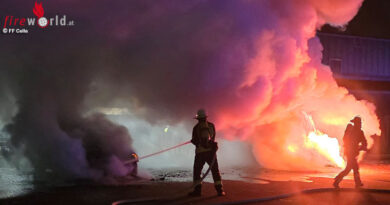 LAGE (DEUTSCHLAND): Die Einheit Lage der Freiwilligen Feuerwehr Lage wurde am Sonntagabend, 29. Jänner 2023, um 19:54 Uhr mit dem Stichwort „Feuer 2 / Brennt Holzunterstand zwischen zwei Häusern“ in die Marienstraße in Lage alarmiert.