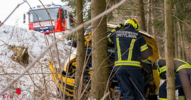 Im Rahmen der notwendigen Arbeiten wurde ein 34-jähriger Feuerwehrmann durch ein herabstürzendes Deckenteil am Kopf getroffen. Er wurde leicht verletzt und zur weiteren Behandlung mit einem Rettungswagen in ein Krankenhaus verbracht. Bei der Begehung des Brandortes wurde festgestellt, dass es sich nicht um einen Kaminbrand handelte, sondern der Brand durch einen Schaden am Kamin verursacht wurde (vermtl. Bruch von Schamottstein/-platte). Hierdurch gelangten die Rauchgase eines betriebenen Kaminofens in eine Zwischendecke und setzten diese in Brand. Die Einsatzmaßnahmen konnten um 01.50 Uhr beendet werden.