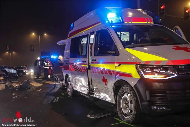 Oö: Kreuzungsunfall mit SEW des Roten Kreuzes und Pkw in Wels