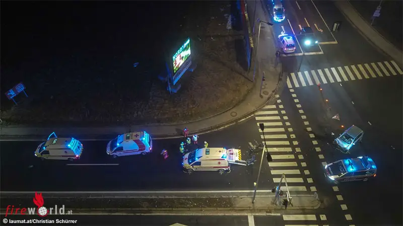 Ersten Informationen zufolge war der Rettungswagen gerade mit Sonderrechten auf dem Weg in ein Krankenhaus, als es auf der Kreuzung zwischen der B137 Innviertler Straße und der Oberfeldstraße zu einer Kollision mit einem Pkw kam.