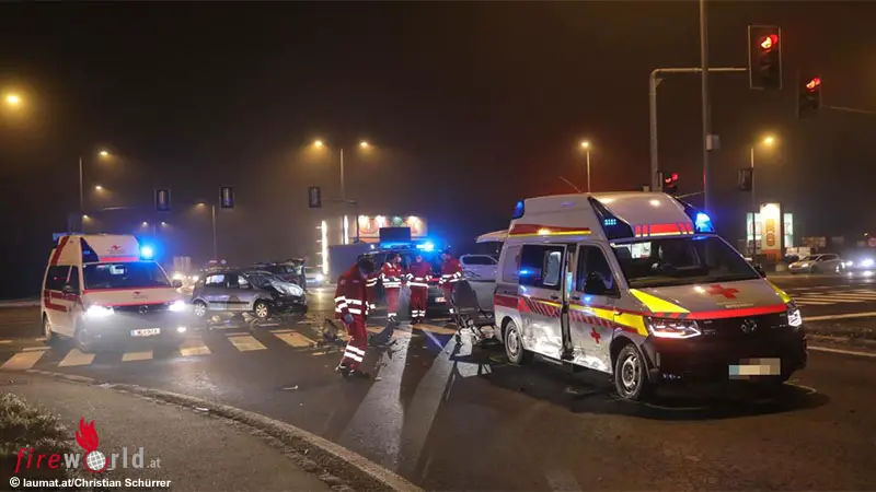 WELS (OÖ): Sonntagabend, 12. Februar 2023, ereignete sich in Wels-Puchberg ein Verkehrsunfall zwischen einem Rettungsauto und einem Pkw. Der SEW war mit einem Patient auf dem Weg in ein Krankenhaus.