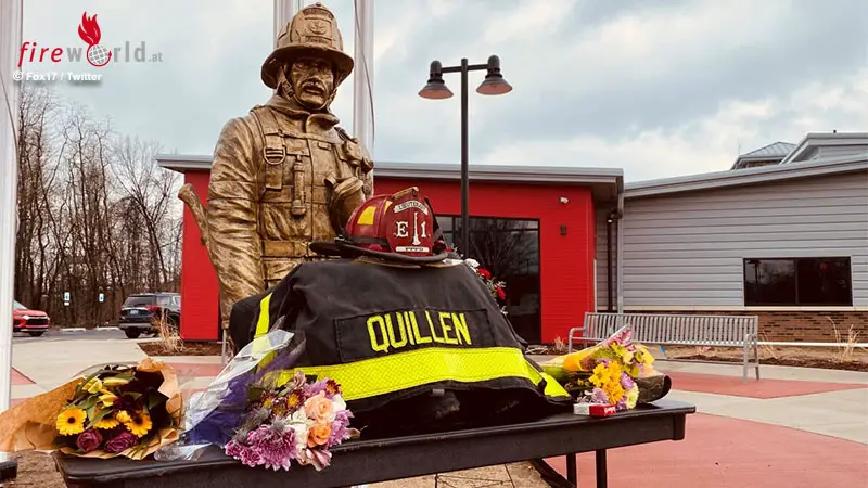 Feuerwehrleute in ganz West Michigan rückten am Mittwoch, dem 22. Februar 2023 zu dutzenden Einsätzen aus, die durch gefrierenden Regen und Eis verursacht worden sind. Dutzende Bäume knickten und Stromleitungen stürzten zu Boden. Laut Infos der Polizei stürzte ein Baum um. Dieser riss dann auch eine Stromleitung mit. Der Feuerwehrmann wurde von dieser getroffen und dabei tödlich verletzt. Feuerwehrmann Quillen hinterlässt eine Frau und ein kleines Kind.