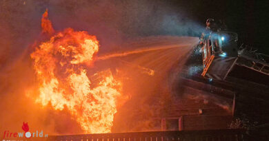 Bei Eintreffen der Feuerwehr in der Garbenstraße standen sieben Großmülltonnen in Vollbrand. Die Flammen hatten bereits auf die Fassade einer Maschinenhalle übergegriffen. Das Feuer konnten durch zwei Löschrohre bekämpft werden. Ein Übergreifen auf das Dach verhinderte die Feuerwehr in letzter Minute. Ein benachbartes Lager für Gasflaschen war von dem Brand nicht betroffen. Teile der Dachkannte mussten im Zuge der Nachlöscharbeiten geöffnet und abgelöscht werden. Die leicht verrauchte Maschinenhalle wurde durch die Feuerwehr entraucht. Von dem Brandereignis waren keine Personen betroffen und es gab keine Verletzten. Die Einsatzmaßnahmen der Feuerwehr waren gegen 18 Uhr beendet.