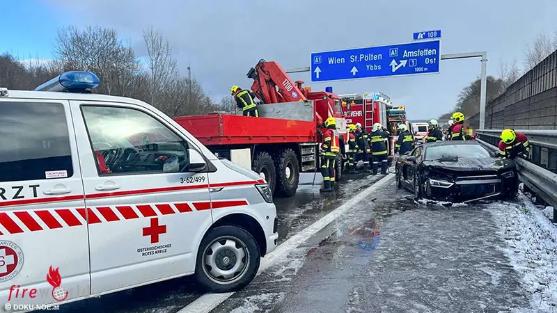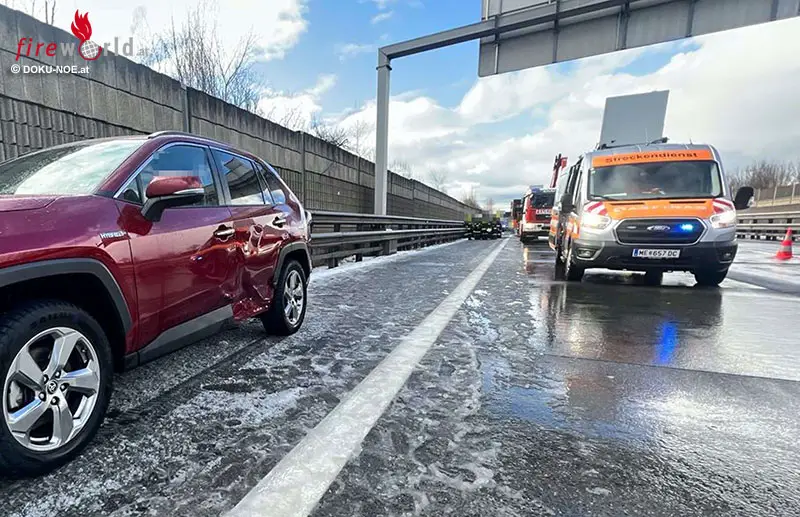 AMSTETTEN (NÖ): Zu einem Serienunfall kam es Sonntagnachmittag, 26. Februar 2023, auf der A1 Westautobahn in Fahrtrichtung Wien zwischen Amstetten West und Ost.
