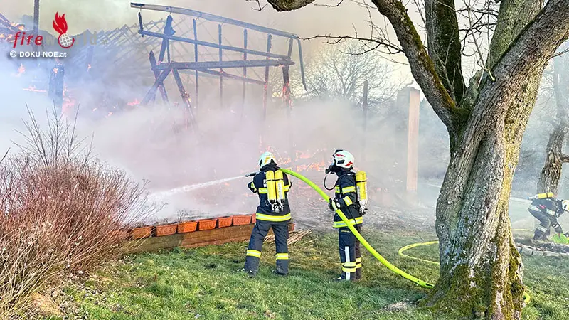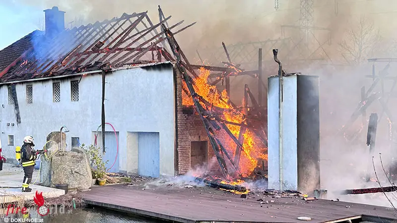 Nö: 10 Wehren bekämpfen Bauernhof-Großbrand (B4) in Wieselburg