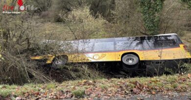 OBERAU, LKR. GARMISCH-PARTENKIRCHEN (BAYERN): Am frühen Mittwochnachmittag, 1. März 2023, brach zunächst im Bereich eines Mülltonnenhäuschens ein Feuer aus, das später auch auf den Dachstuhl eines Einfamilienhauses übergriff. Der Bewohner erlitt beim Löschversuch Brandverletzungen, der entstandene Sachschaden dürfte sich im hohen fünfstelligen Bereich bewegen. Die Kriminalpolizei übernahm die Ermittlungen zur Brandursache.