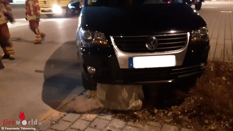 Die Polizei hatte die Feuerwehr nachgefordert, da ein Pkw-Lenker mit seinem Fahrzeug mehrere große Steine auf dem Parkplatz eines Einkaufsmarktes überfuhr, die sich innerhalb einer Pflanzfläche befanden. Das Auto blieb auf den Steinen stecken und musste mittels Kran des ebenfalls hinzugerufenen Abschleppdienstes heruntergehoben werden.