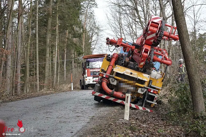 Nö: Betonpumpe bei Emmersdorf in Schräglage