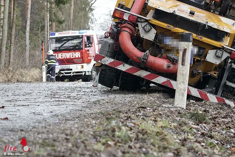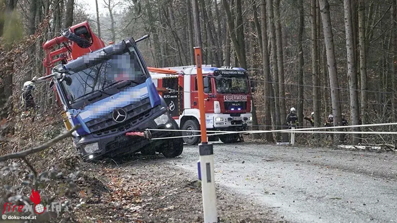 EMMERSDORF (NÖ): Nach einem Ausweichmanöver geriet am 9. März 2023 ein Lkw der auf der L7194 bei Mödelsdorf nahe Emmersdorf im Bezirk Melk ins Bankett und versank in diesem.