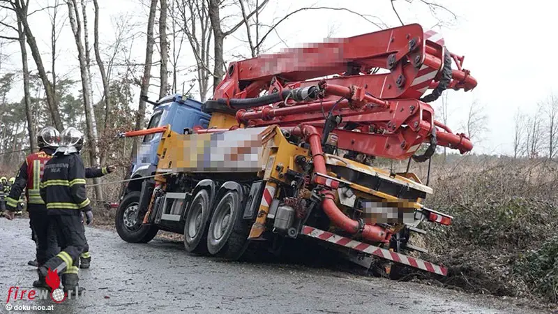 Nö: Betonpumpe bei Emmersdorf in Schräglage