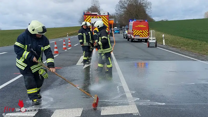 Auch die 50-jährige musste leicht verletzt ins Krankenhaus transportiert werden. Die Fahrbahn war bis 11.20 Uhr nur einseitig befahrbar. Die Freiwillige Feuerwehr Geisenhausen war zur Umleitung des Verkehrs und technischen Hilfeleistung eingesetzt.