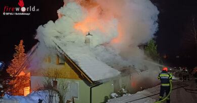 Am 10.03.2023, gegen 22:10 Uhr, wurden die Feuerwehren Bischofshofen sowie Werfen zum Brand eines leerstehenden Einfamilienhauses in Bischofshofen-Kreuzberg beordert, wo bereits der Dachstuhl in Vollbrand stand.
